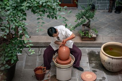 生活在云南省紅河哈尼族彝族自治州建水縣碗窯村的徐榮洪是當(dāng)?shù)匦旒腋G的第五代制陶藝人,也是非遺建水紫陶燒制技藝的傳承人。 泥料制備、拉坯造型、濕坯裝飾、雕刻填泥、高溫?zé)?、無釉磨光……要想做出精良的紫陶工藝品,每個流程都需要潛心鉆研?!爸谱骷妓嚟h(huán)環(huán)相扣,某一道工序出現(xiàn)紕漏,燒出來就是瑕疵品?!?徐榮洪拿起刻刀,對陶坯表面開始進(jìn)行雕刻。 今年57歲的徐榮洪小時候就跟著長輩上山挖陶泥,多年來堅持鉆研建水紫陶的制作技藝。 徐榮洪介紹說,作為紫陶藝人,以陶為紙,根據(jù)器型將不同的文化與藝術(shù)形式注入其中,使其具有無限活力。非遺文化閃爍著人類智慧的光芒,也承載著人們心底的情思鄉(xiāng)愁。