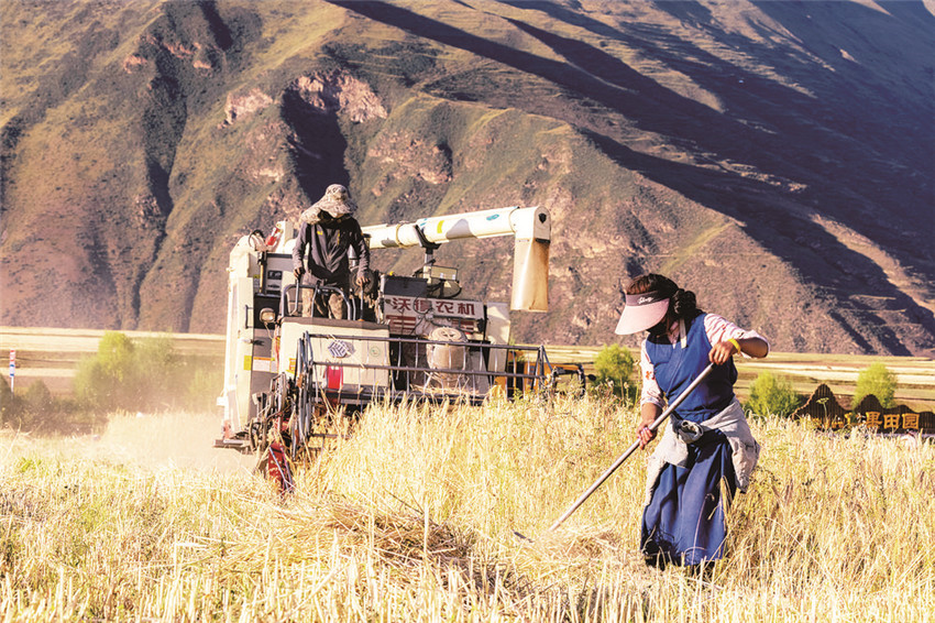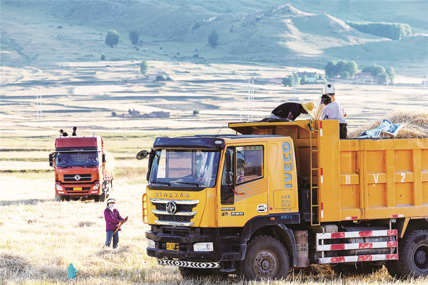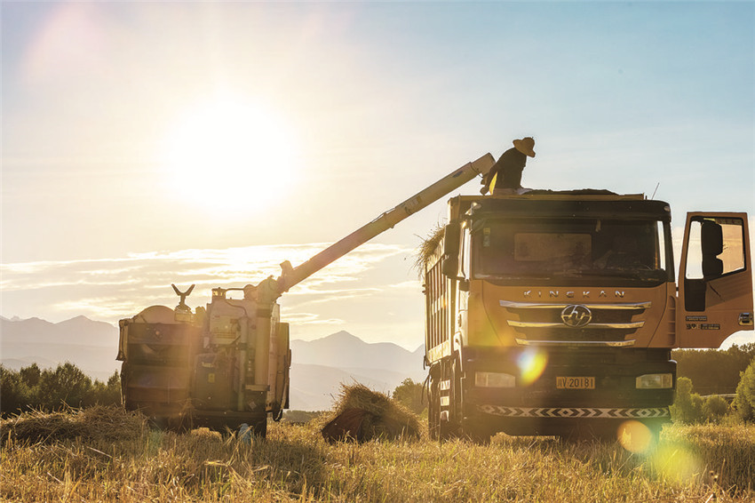 甘孜縣是我州的農(nóng)業(yè)大縣,也是全國青稞商品糧基地之一,素有“康北糧倉”的美譽(yù)。日前,在甘孜縣仁果鄉(xiāng)青稞收割現(xiàn)場,一望無垠的田地里麥浪滾滾、麥香四溢,一臺(tái)臺(tái)聯(lián)合收割機(jī)在金色的青稞地里來回馳騁,時(shí)不時(shí)停下來“吐出”金燦燦的青稞,農(nóng)戶們的臉上露出豐收的喜悅笑容。