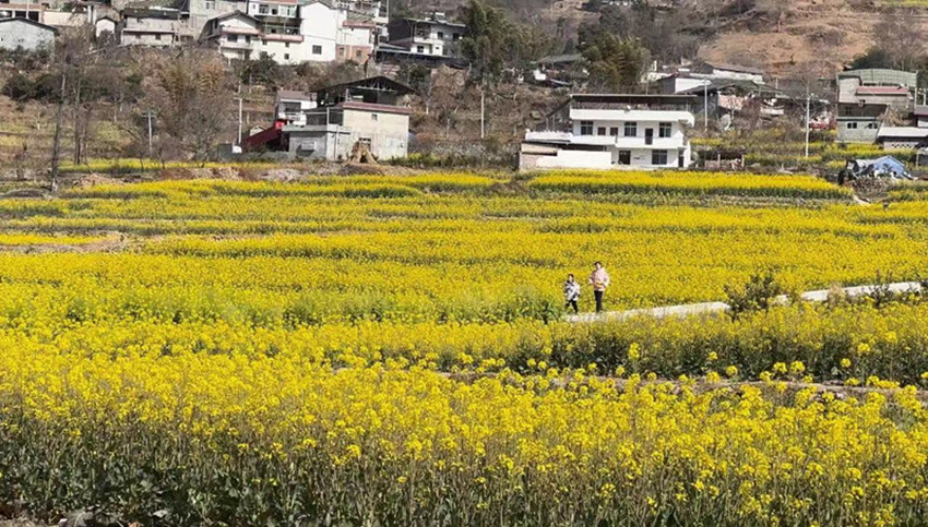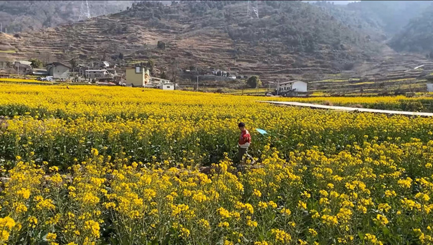 在距離瀘定縣城20多公里的德威鎮(zhèn)田壩村,成片的油菜花迎著春陽連綿盛開,目之所及盡是芳菲,猶如彩色地毯披覆鄉(xiāng)間,勾勒出一幅產(chǎn)業(yè)興旺、生態(tài)宜居、鄉(xiāng)村振興的秀美畫卷,成為瀘定鄉(xiāng)村靚麗的風(fēng)景線。