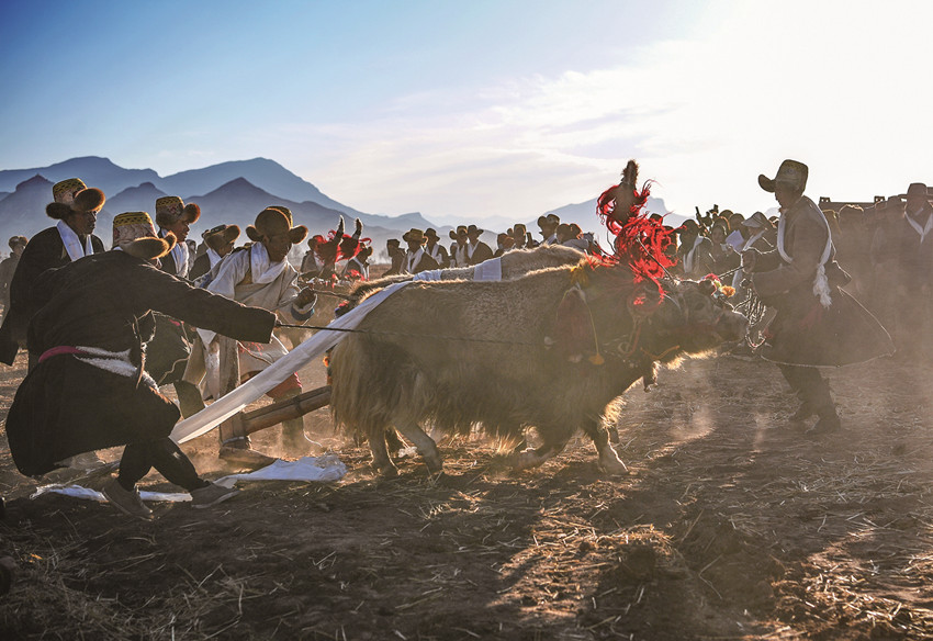 近日,西藏農(nóng)民舉行一年一度春耕大典。村民沿襲著傳承千年的春耕民俗,身著節(jié)日盛裝,手捧“切瑪”(五谷豐登斗),唱起祈愿歌,互敬青稞酒。當鐵犁翻開土地,婦女將手中的種子撒下,祈求新的一年豐收。