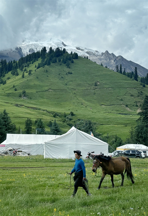 不管然日卡村還是則巴村,村民的勤勞善良也一樣讓人印象深刻。然日卡村的藏族姑娘丁真拉珍剛過18歲,卻經(jīng)常像個將軍去山上放牧和指揮100多頭牦牛,如果時間允許,她還去挖蟲草和松茸,但同時又在村里當(dāng)旅游向?qū)?,騎上摩托、牽上馬匹帶游客四處參觀,每天忙得不亦樂乎;同樣是然日卡村的小伙澤仁剛?cè)⒘宋棠饭媚?,他們從傳統(tǒng)的放牧中抽身出來,與村里許多年輕人一樣,一心一意打造鄉(xiāng)村民宿,用勤勞的雙手走上了一條嶄新的致富路;而則巴村的帥小伙甲他,今年也在村子里建起了屬于他們一家的“奔然甲他”民宿,奔然是村前一座小山的名字,甲他相信他們的日子一定如山一般堅實越過越好。