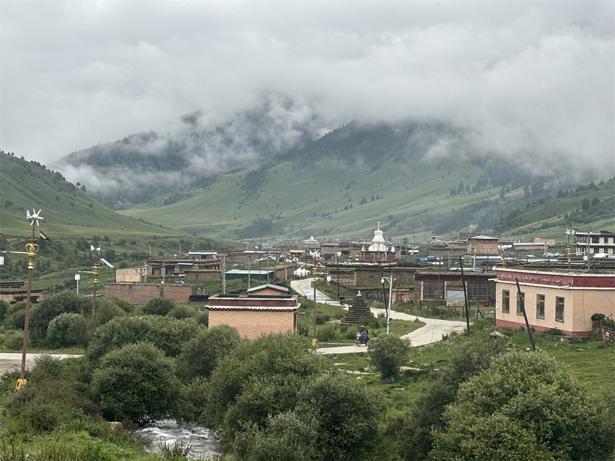 然日卡村是格聶山下一個典型的藏族村莊,因自然景觀優(yōu)美而聞名。站在村前觀景平臺上,能看到以雄奇險峻而著稱的格聶神山。格聶神山位于理塘縣西南部,是四川省甘孜藏族自治州理塘縣境內(nèi)的著名山脈,?它不僅是四川第三高峰,?而且因其獨特的自然景觀和深厚的文化背景,?吸引了眾多旅行者和朝圣者。?格聶神山的地質(zhì)構(gòu)造和自然景觀極為豐富,?包括冰川、?雪峰、?草原、?沼澤、?瀑布等,?展現(xiàn)了大自然的鬼斧神工和生命的多樣性。?