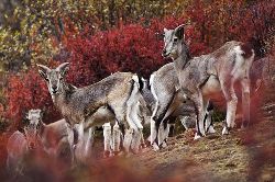 巖羊(學(xué)名:Pseudois nayaur),體型中等,形態(tài)介于野山羊與野綿羊之間。兩性具角,雄羊角粗大似牛角,但僅微向下后上方彎曲。以青草和各種灌叢枝葉為食。冬季啃食枯草。它們還常到固定的地點(diǎn)飲水,但到寒冷季節(jié)也可舔食冰雪。無固定獸徑和棲息場(chǎng)所。它們?cè)趹已虑捅谥灰幸荒_之棱,便能攀登上去。一跳可達(dá)2、3米,若從高處向下更能縱身一躍10多米而不致摔傷。冬季發(fā)情交配,次年6、7月產(chǎn)仔,每年通常只產(chǎn)1仔。主要天敵是雪豹、豺、狼,以及禿鷲和金雕等大型猛禽。中國(guó)國(guó)家二級(jí)重點(diǎn)保護(hù)野生動(dòng)物?! ?br />     巖羊分布于西藏、青海、新疆、甘肅、四川西部等地,還向東北延伸分布至黃土高原。目前,其廣大分布區(qū)的環(huán)境仍處于相對(duì)原生狀態(tài),資源儲(chǔ)量頗為可觀,是很有開發(fā)前景的動(dòng)物種類之一。
