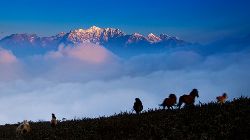 地處瀘定、天全、榮經(jīng)三縣交界的二郎山紅巖頂是與牛背山天然觀景臺(tái)隔山相望的又一處云海奇觀觀景臺(tái)。這里與牛背山、貢嘎山成崎角遙遙相視;松柏林立、杜鵑滿(mǎn)坡、駿馬閑遛,草甸翠綠;移步亦景,美景誘人,讓人留連忘返,心曠神怡…………