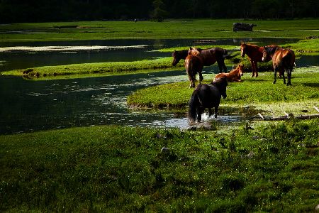 康定蓮花湖有純凈的陽(yáng)光、湛藍(lán)的天空、綠毯般的高山草甸、燦若繁星的野花、藍(lán)寶石般的高原湖泊、銀鏈般的溪流迂回盤(pán)旋、高大的康巴駿馬,還有在風(fēng)中獵獵飛舞的經(jīng)幡。