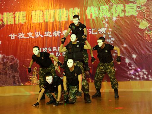 高亢的軍歌、奔放的舞蹈、幽默的小品,一個(gè)個(gè)精彩的節(jié)目,一曲曲動(dòng)人的旋律,一陣陣熱烈的掌聲,警營(yíng)里充滿了歡聲笑語(yǔ),蕩漾著濃濃暖意。