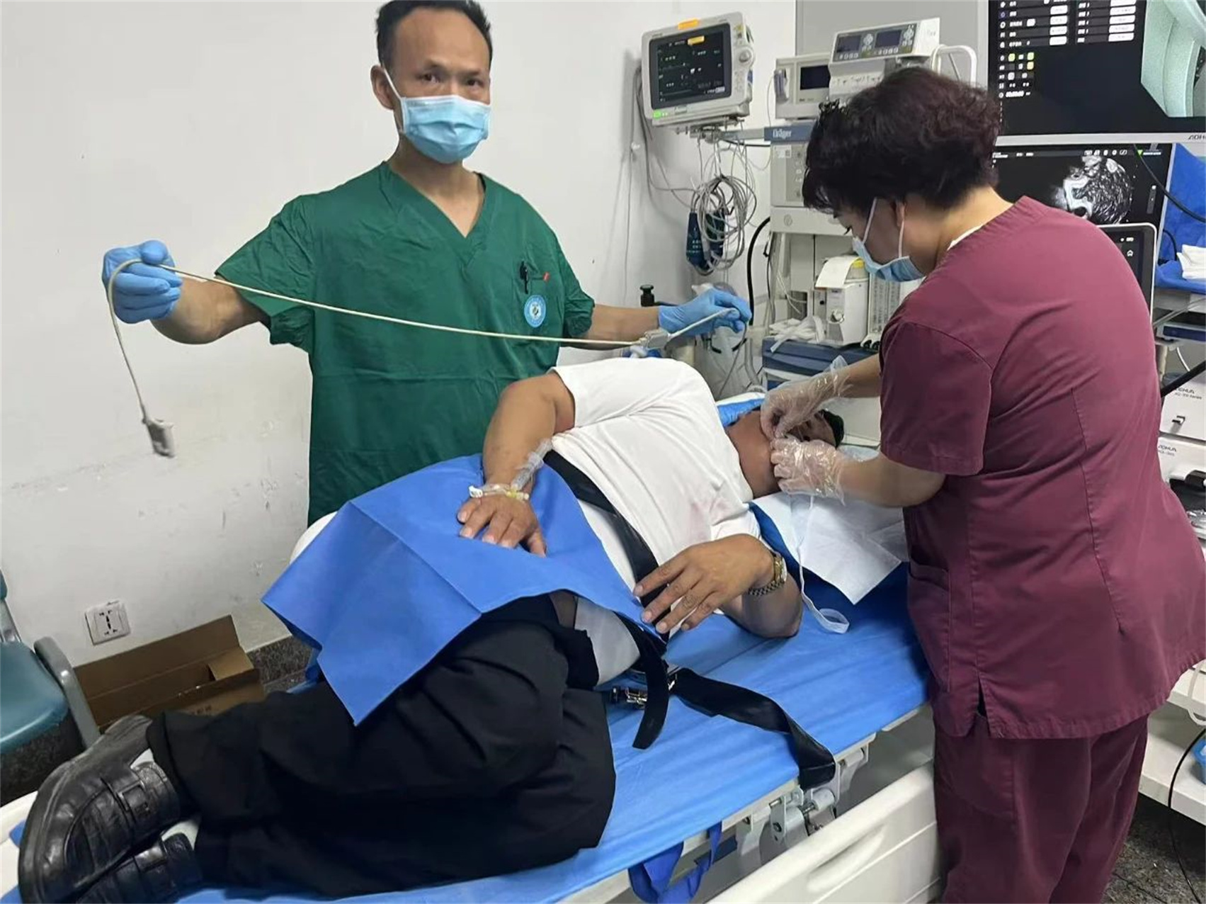 圖為醫(yī)務(wù)人員正在為患者檢查。