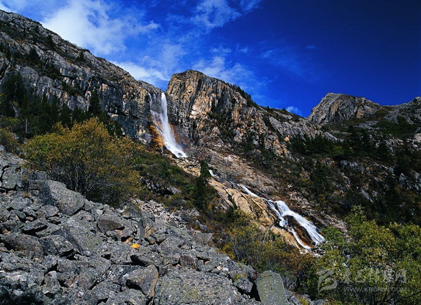 多瀑溝是康巴地區(qū)不可多得的自然生態(tài)大峽谷,地處麥宿沿普馬鄉(xiāng)上朔的原始荒塬地帶。整個多瀑溝生態(tài)旅游占地面積1112平方公里,從丁麥公路傍麥曲河逆行而上,穿行于綿延不盡的生態(tài)大峽谷之間,滿眼蒼翠欲滴的林海灌叢使人迷醉,點綴其間的杜鵑、桃梅馥郁飄香,令你心曠神怡。這里常年青山依依,溪水淙淙,猶如進(jìn)入了另一世界。一路走來,四處景色各異,古樸而不乏清純嬌妍。時逢坳間、梁崗處星落著溫泉湖泊,若散落的珍珠瑰麗明凈。