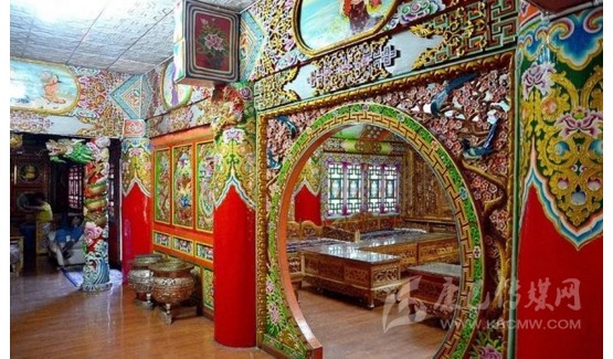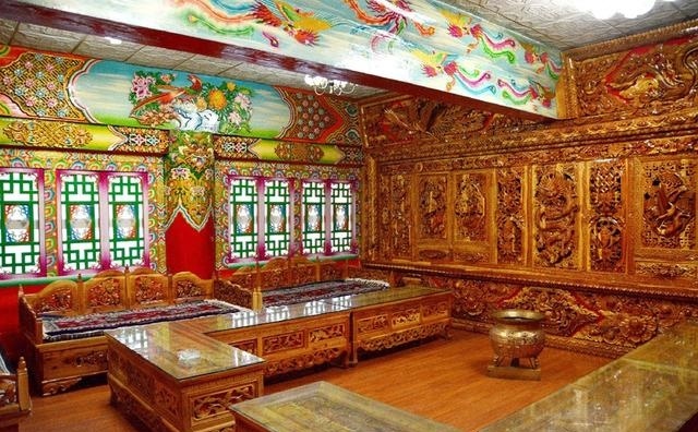道孚民居修建最麻煩的工序是它的內(nèi)裝修。因為是技術(shù)活,親朋好友幫不上忙,而且時間長,花錢多。裝修的工匠根據(jù)主人的要求,先完成雕刻,再繪畫。一般來講,一棟中型的民居要用半年多的時間才能完成內(nèi)部裝修。雕刻與繪畫,是道孚民居的精華所在。道孚民居以其獨特的風(fēng)格譽滿藏區(qū),口碑遠及海外。