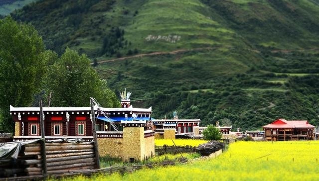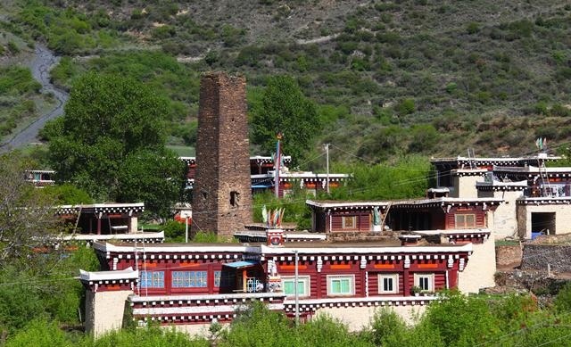 走進這座別致的高原城市,首先呈現(xiàn)在你面前的就是那鱗次櫛比的藏式民居。這些民居外表主要由棕白兩色構(gòu)成,白色的屋頂,白色的主墻,木結(jié)構(gòu)處多用棕色顏料染涂,其間配以紅色、藍色圖案,在藍天、白云、青山、綠水的輝映下,仿佛幻化成妙不可言的積木圖案。這里的民居修得美輪美奐。如果不是親眼見到,還一定會認為這令人眩目的房屋是夢境。這就是道孚民居,被譽為散落人間的仙境皇宮。