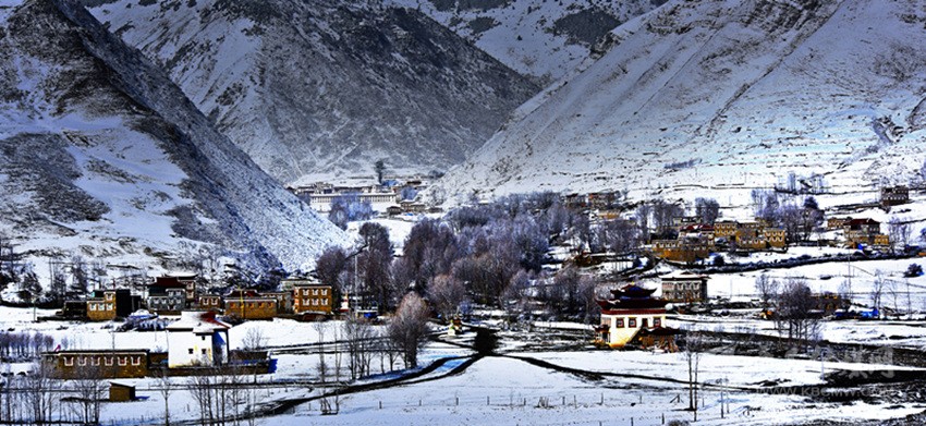 這個季節(jié)進入德格,在途中放眼望去,窗外一片白雪茫茫,雪花覆蓋著道路,覆蓋著印經(jīng)院、新路海,覆蓋著德格的樹木與秋草。