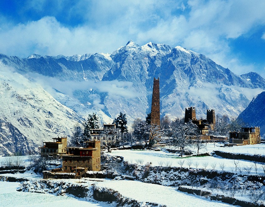 丹巴神山古碉雪。
