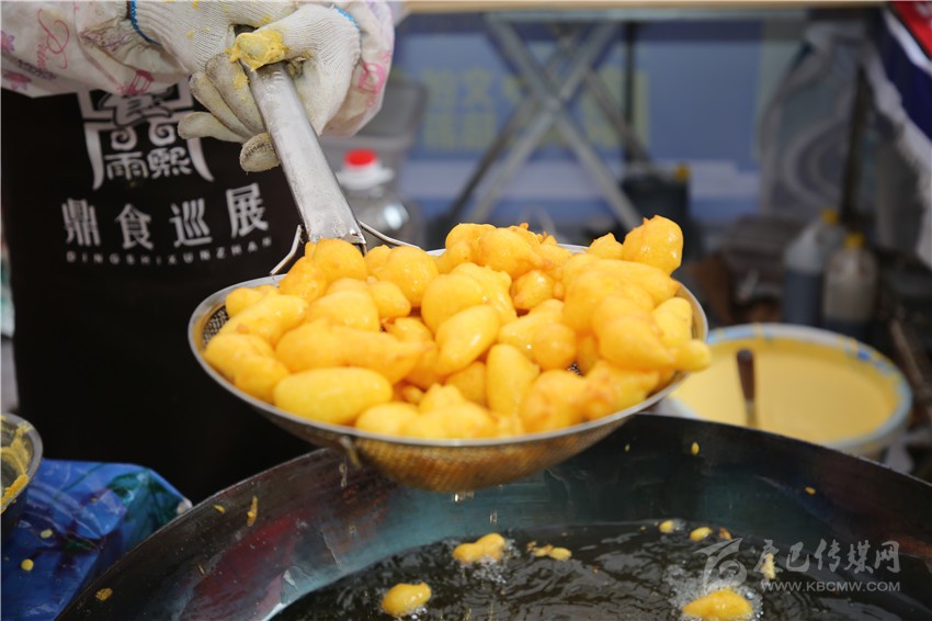 要說(shuō)美食節(jié)最炫酷的店鋪,那非“印度飛餅”莫屬了。記者穿過(guò)層層圍觀的人群,點(diǎn)了一份菠蘿飛餅。只見(jiàn)廚師將捏好的面團(tuán)在案板上揉了幾下,便捏緊面餅一端按順時(shí)針?lè)较蜣D(zhuǎn)動(dòng),手里的面餅越轉(zhuǎn)越大,越轉(zhuǎn)越薄,幾近透明,接著就是放餡料,稍做煎炸,切割裝盤(pán),短短一分鐘內(nèi),一氣呵成。記者接過(guò)盤(pán),咬下一口,“喀嚓”一聲,再一口就吃到了菠蘿的清香,外層淺黃松脆,內(nèi)層綿軟白皙,略帶甜味,好一個(gè)外脆內(nèi)嫩?。〗榔饋?lái)層次豐富,一軟一脆,口感對(duì)比強(qiáng)烈,嚼過(guò)之后,齒頰留芳。當(dāng)脆餅撞上菠蘿的清香,就像在夏天突然掉進(jìn)一個(gè)水池,清爽又驚喜。“感覺(jué)就是一件的藝術(shù)品啊!”如此的驚嘆聲從人群中迸發(fā)出來(lái)。