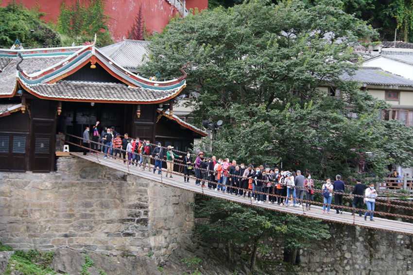 游客參觀(guān)瀘定橋。