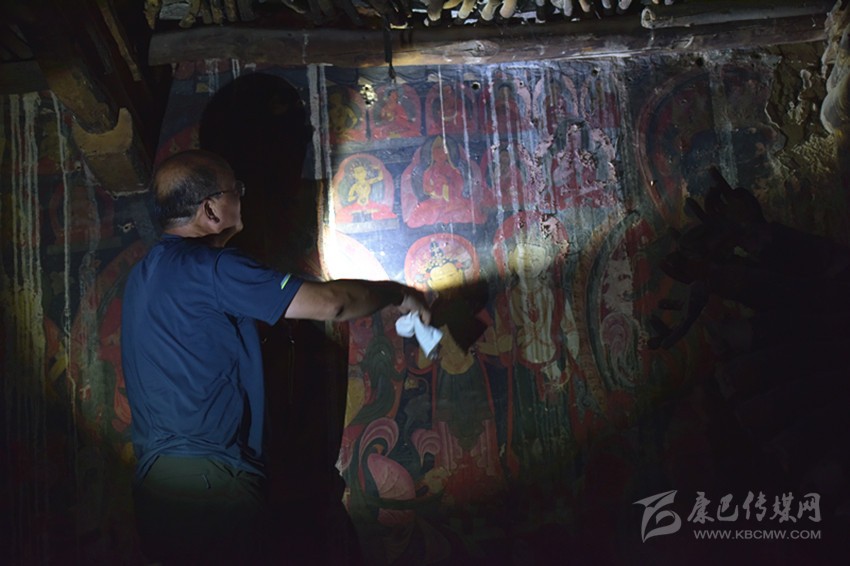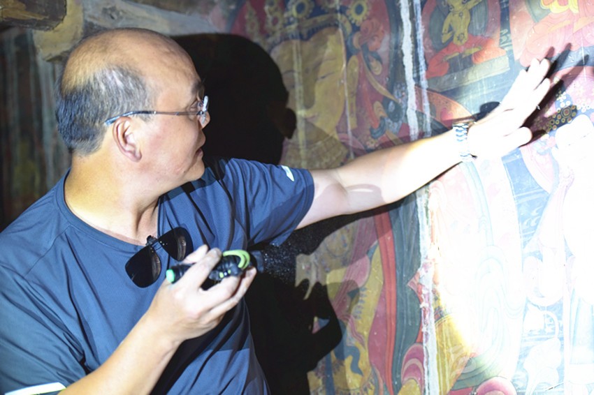 羅文華考察壁畫。
