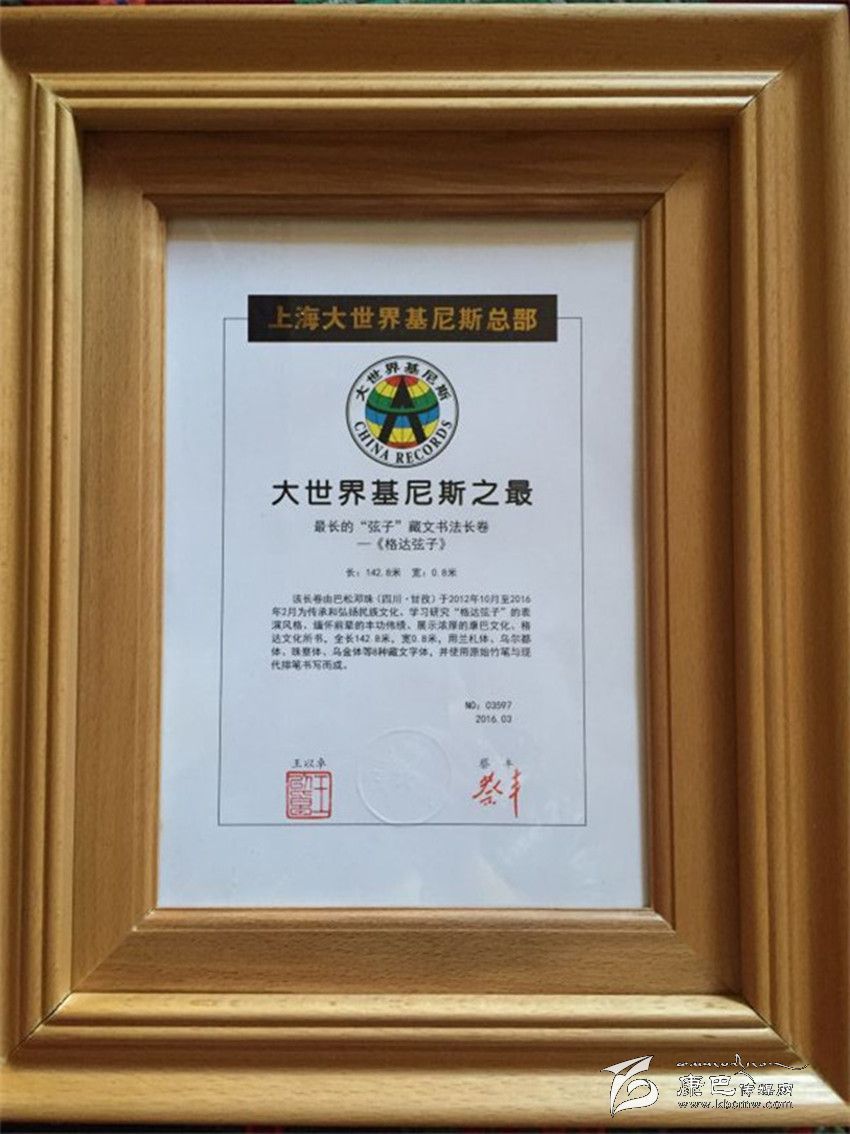 我州藏文書法家、省級藏文書法傳承人、上?;崴辜o錄創(chuàng)造者巴松鄧珠歷時三年創(chuàng)作完成了《格達弦子詞》藏文書法長卷。日前,《格達弦子詞》成功申報上海大世界基尼斯最長的“弦子”藏文書法長卷。5月6日至12日“圣潔甘孜·走進上海”系列展在上海展覽中心西二館亮相。