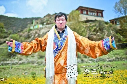 第一次穿上金色的藏裝,戴上潔白的哈達(dá),感覺很奇妙,中國政法大學(xué)的趙丁在藍(lán)天白云下為自己留一張影。