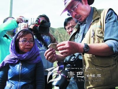 6月7日,陜西省考古研究院研究員張建林和考古隊(duì)員們沿石經(jīng)壇城走了一圈,在他們身后,當(dāng)?shù)氐哪撩窬o緊跟隨,一是為轉(zhuǎn)經(jīng),二是為了聽聽專家說些什么。偶爾,專家們停下來,仔細(xì)聆聽當(dāng)?shù)毓ぷ魅藛T的介紹,不少牧民也停下來,一臉笑容看著眼前的專家。