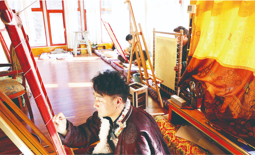 白玉縣河坡鎮(zhèn)的門薩唐卡畫派,以其獨(dú)樹一幟的畫法、瀟灑傳神的畫風(fēng)成為了唐卡繪畫藝術(shù)寶庫中難得的瑰寶。