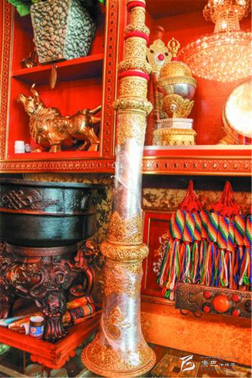 在河坡一代,像根秋丹貞、伍金這樣的手工藝人還有很多很多。其麥一家和根秋丹貞家一樣,也是主要制作佛器,在他的記憶里,爺爺、父親、叔叔、伯伯都是制作藝人,而自己家到底有多長的制作歷史,連他都說不清楚。51歲的扎西次仁這幾天有點(diǎn)忙,聽說噶陀寺最近要舉行法會,而以法器制作為主的他,早早的就在噶陀寺的臨時商點(diǎn)支起了“小賣部”,在這里叫賣自己家的精品法器,嘎烏、計(jì)數(shù)器、法號等等讓記者看得應(yīng)接不暇。