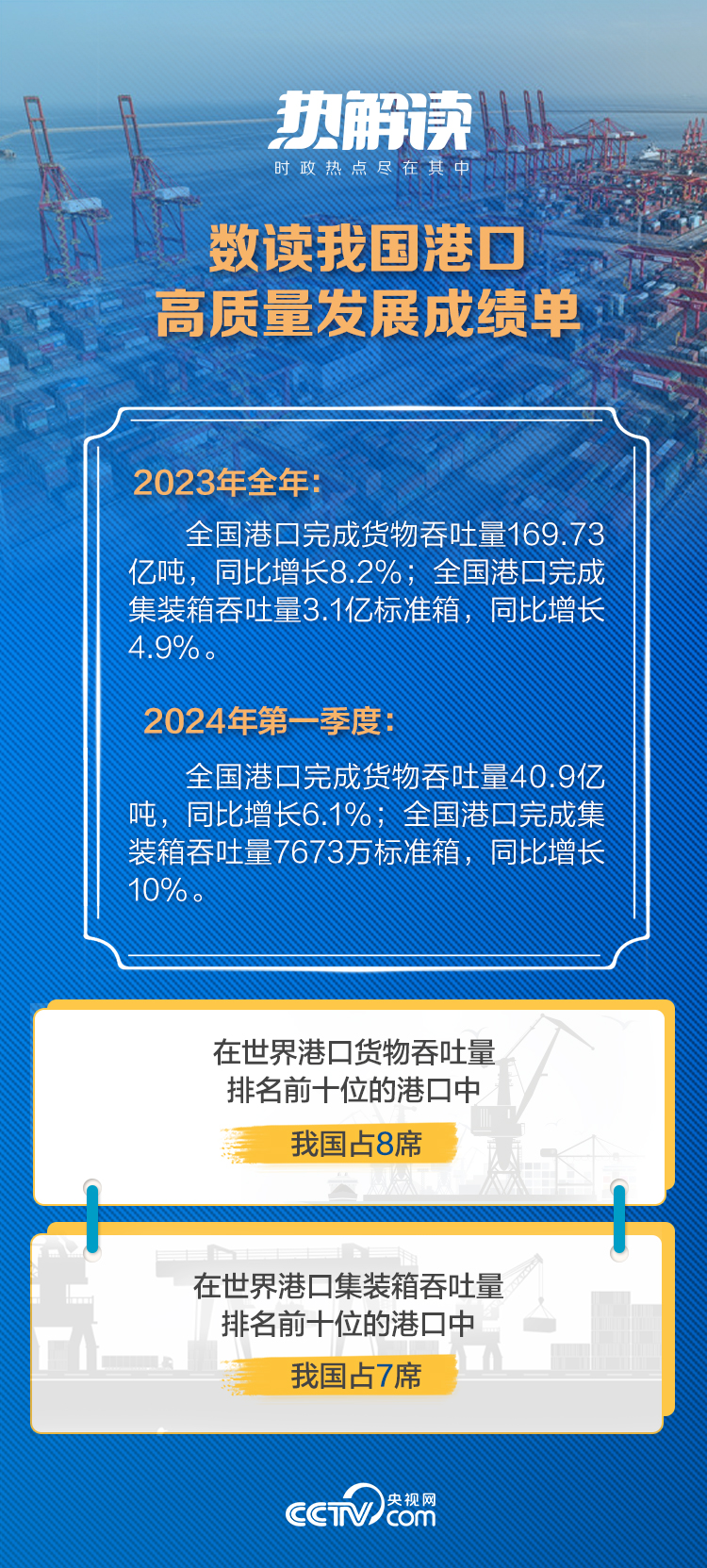 透過港口這扇窗,我們能看到“志在萬里”、向海圖強的戰(zhàn)略定力,也能深刻感受到中國經(jīng)濟的強大韌勁和旺盛活力。