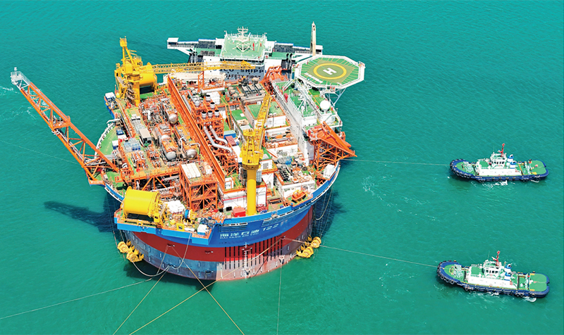 “海葵一號”,是亞洲首艘圓筒型浮式生產(chǎn)儲卸油裝置。該裝置集原油生產(chǎn)、存儲、外輸?shù)裙δ苡谝惑w,被網(wǎng)友們昵稱為“超級能源碗”,也是完全由我國自主設計建造的海上油氣加工廠。圖為2024年5月12日,“??惶枴睆闹袊S颓鄭u國際化高端裝備制造基地離港啟運。 人民圖片 張進剛/攝