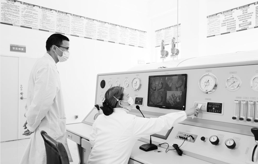 占地180余平方米的高壓氧治療中心,可容納6名患者同時治療。高壓艙內(nèi),患者可以自在地坐著“吸氧”,還可以聽聽音樂、聊聊天。艙內(nèi)配備空調(diào)、監(jiān)控及對講裝置,醫(yī)護人員在安全操控設備的同時全程密切關注艙內(nèi)情況,以防意外情況的發(fā)生。