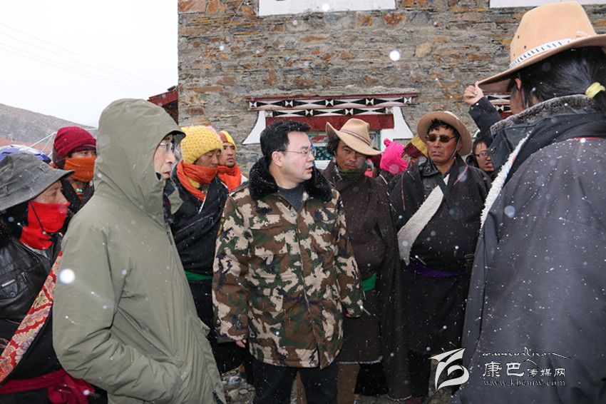 胡昌升頂風冒雪看望慰問塔公鄉(xiāng)下馬龍村受災群眾 。