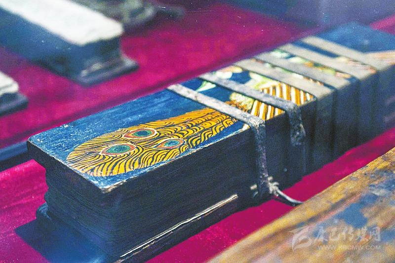 在展覽現(xiàn)場,擺放著一些格薩爾的藏文文獻(xiàn)資料,與傳統(tǒng)漢語古籍裝幀不同,藏文典籍主要采用梵夾裝形式,俗稱長條本。此次展出的包括格薩爾梵夾裝的手抄本、伏藏本、木刻本以及近六十年來正式出版的各種圖書等等,囊括了數(shù)百部格薩爾王史詩。