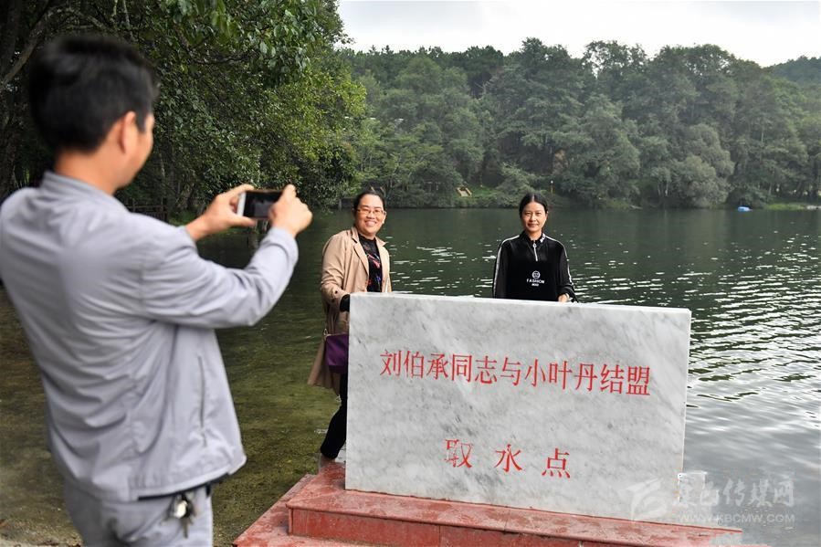 9月7日,游客在景區(qū)內(nèi)彝海結(jié)盟取水點(diǎn)拍照留念。新華社記者 孫瑞博