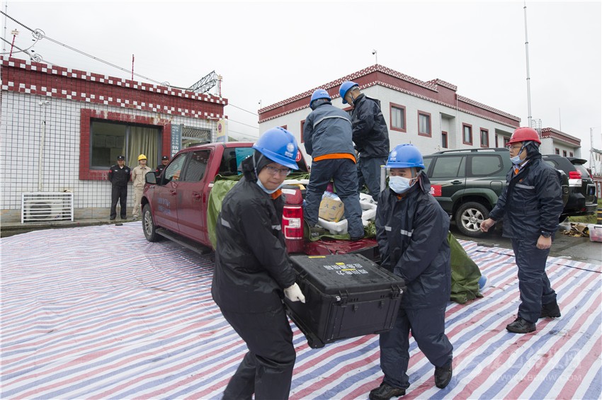 獲知“災(zāi)情”的第一時(shí)間, 國(guó)網(wǎng)四川省電力公司馬上發(fā)布集結(jié)準(zhǔn)備信息,聯(lián)系國(guó)網(wǎng)陜西省電力公司、重慶市電力公司進(jìn)行應(yīng)急聯(lián)動(dòng)支援。國(guó)網(wǎng)甘孜供電公司立即啟動(dòng)應(yīng)急預(yù)案迅速響應(yīng),對(duì)災(zāi)害進(jìn)行先期處置。來自陜西、重慶和四川應(yīng)急中心、信通公司、自貢公司、遂寧公司、眉山公司、電力醫(yī)院等6家基層單位的11支應(yīng)急隊(duì)伍全副武裝,攜帶工器具和應(yīng)急救援物資,在蒲江集結(jié)后,頂風(fēng)冒雨,遠(yuǎn)距離奔襲7小時(shí)抵達(dá)“災(zāi)區(qū)”。