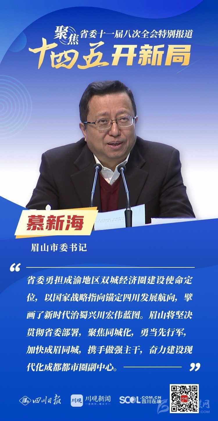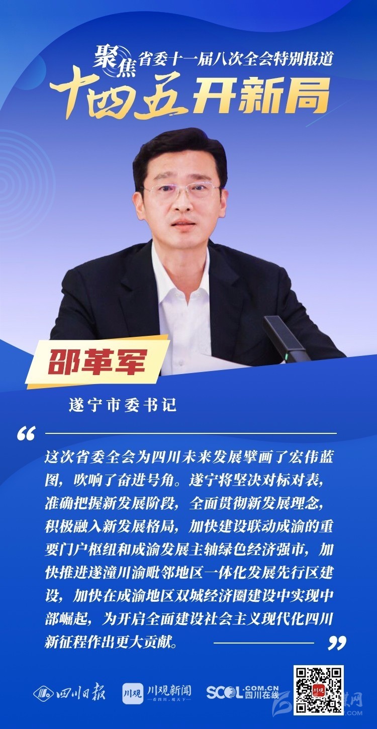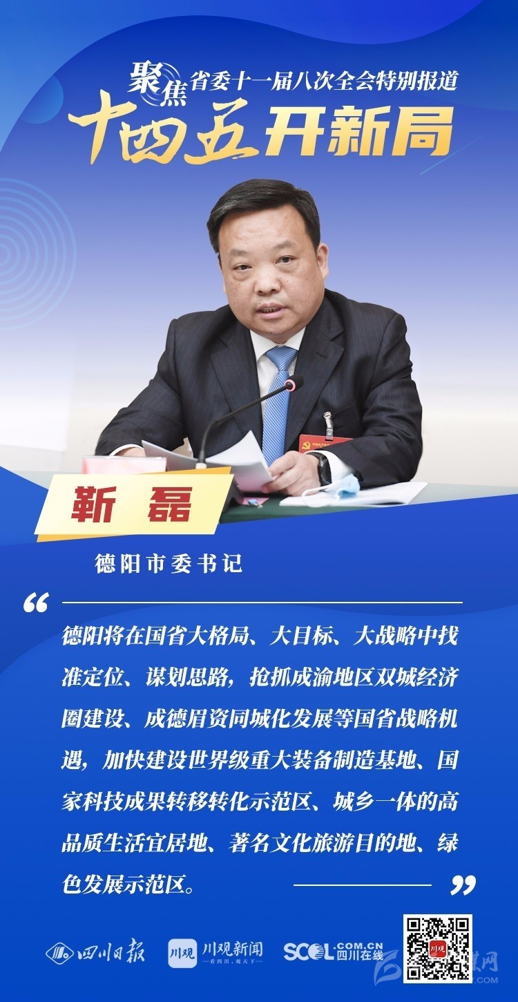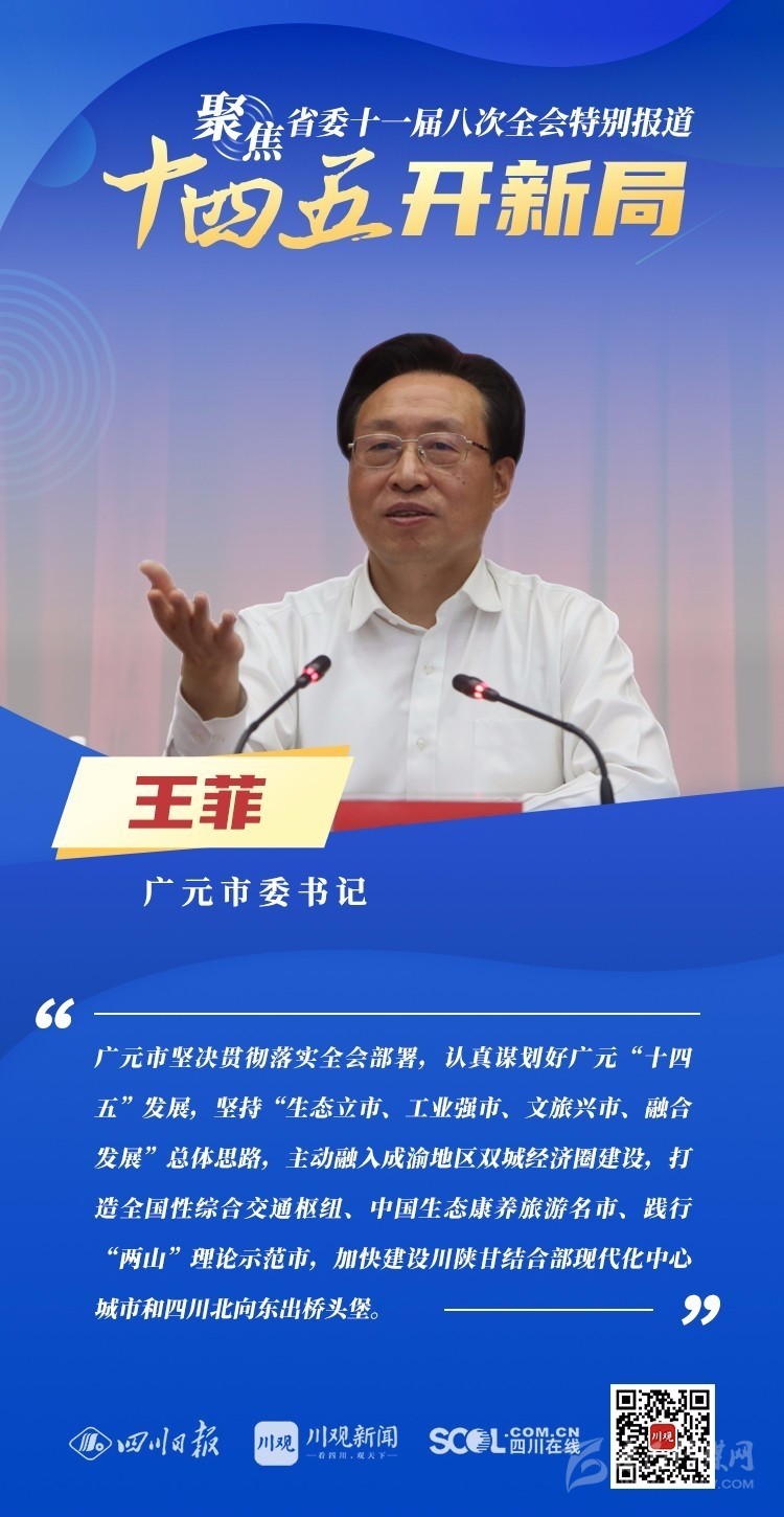 12月3日,中共四川省委十一屆八次全會(huì)在成都開幕,全會(huì)將深入學(xué)習(xí)貫徹黨的十九屆五中全會(huì)精神,審議《中共四川省委關(guān)于制定四川省國(guó)民經(jīng)濟(jì)和社會(huì)發(fā)展第十四個(gè)五年規(guī)劃和二〇三五年遠(yuǎn)景目標(biāo)的建議(討論稿)》,為未來5年乃至更長(zhǎng)時(shí)期四川發(fā)展謀劃新藍(lán)圖 。
