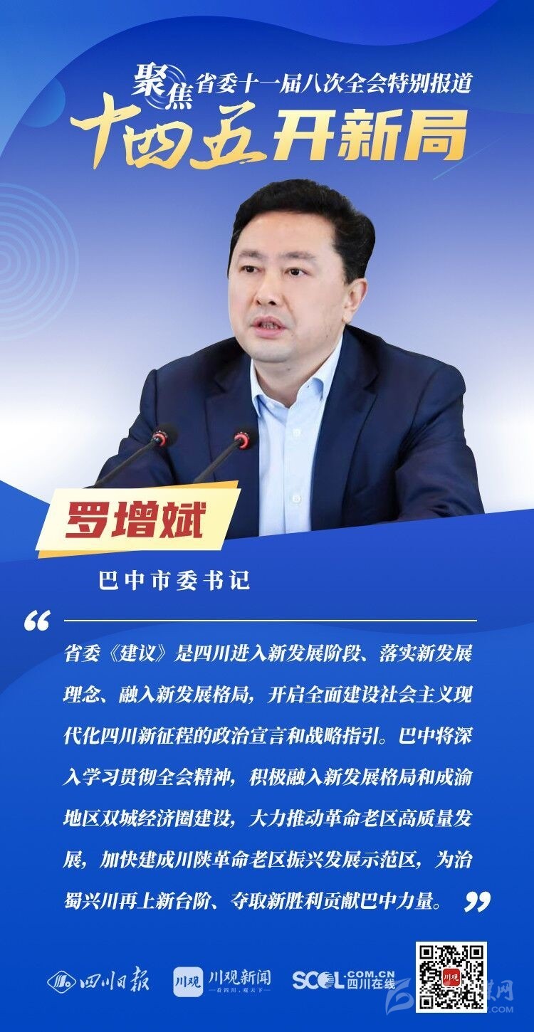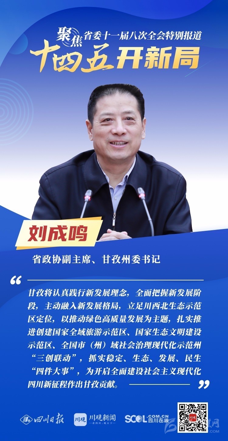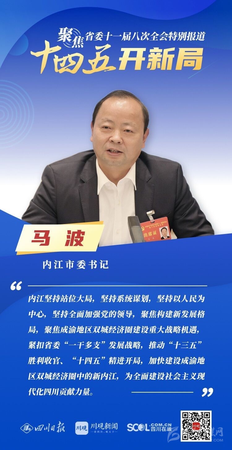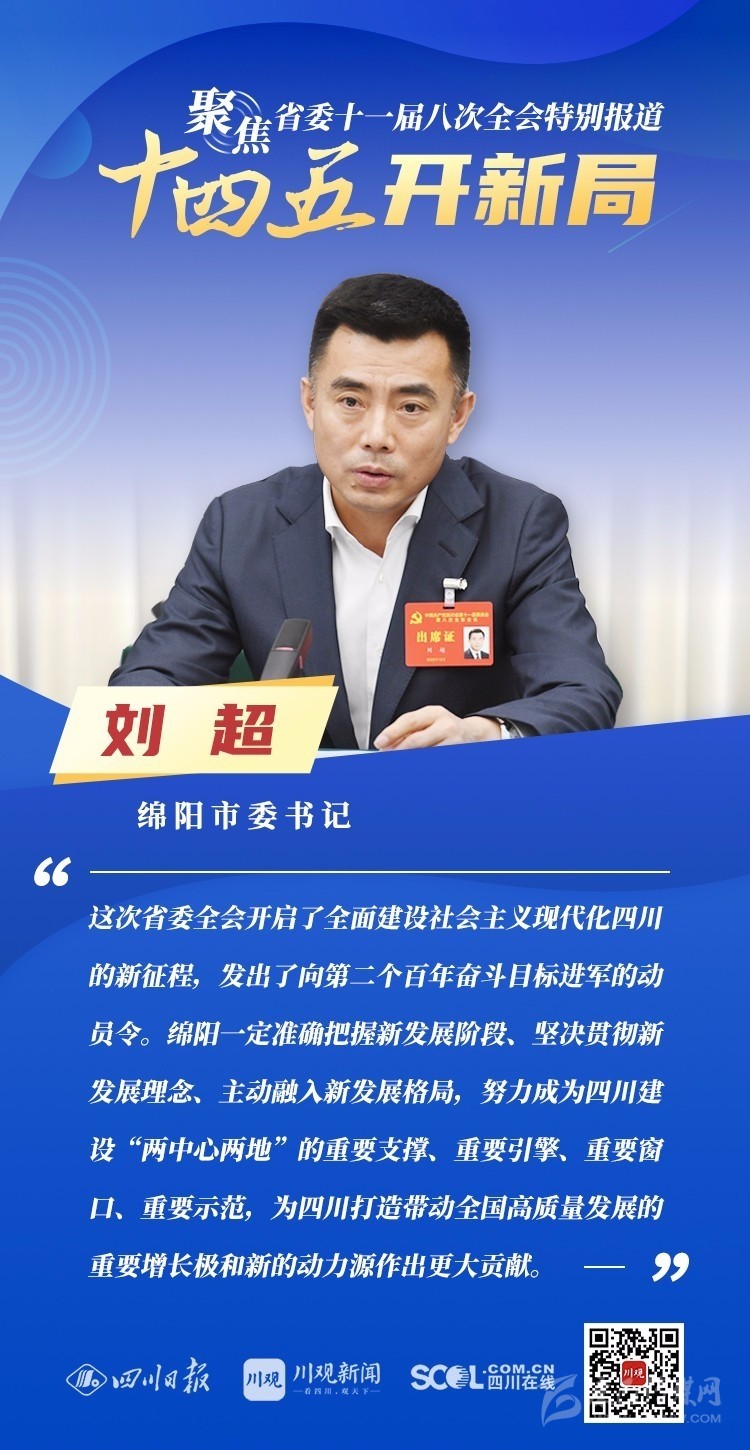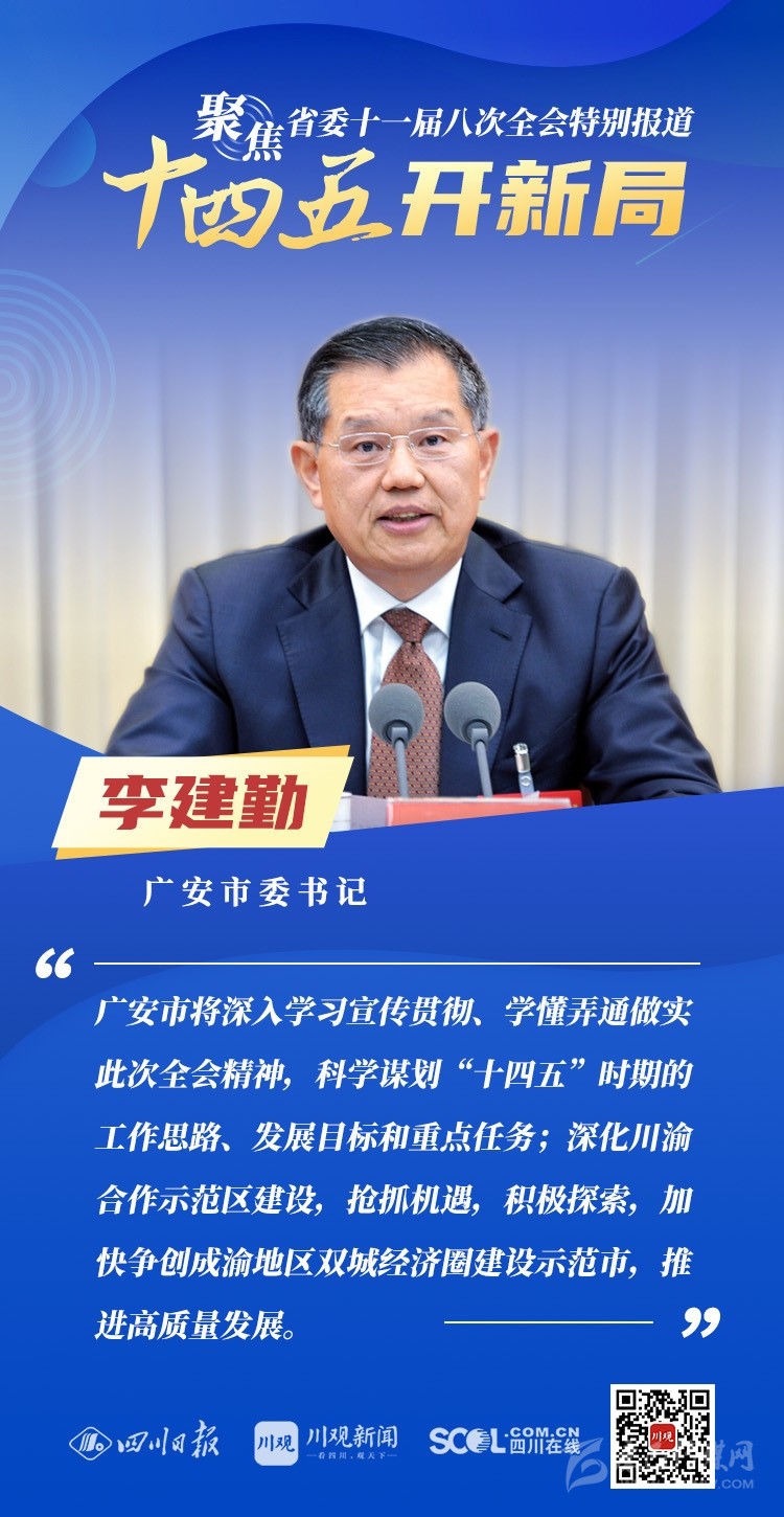 12月3日,中共四川省委十一屆八次全會(huì)在成都開幕,全會(huì)將深入學(xué)習(xí)貫徹黨的十九屆五中全會(huì)精神,審議《中共四川省委關(guān)于制定四川省國(guó)民經(jīng)濟(jì)和社會(huì)發(fā)展第十四個(gè)五年規(guī)劃和二〇三五年遠(yuǎn)景目標(biāo)的建議(討論稿)》,為未來5年乃至更長(zhǎng)時(shí)期四川發(fā)展謀劃新藍(lán)圖 。