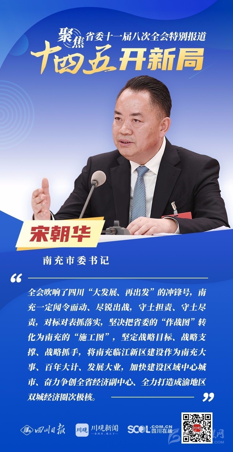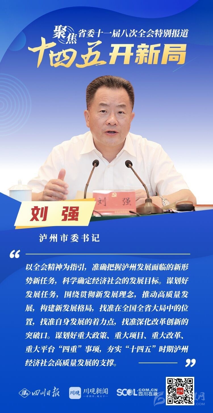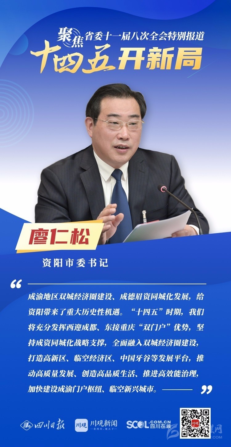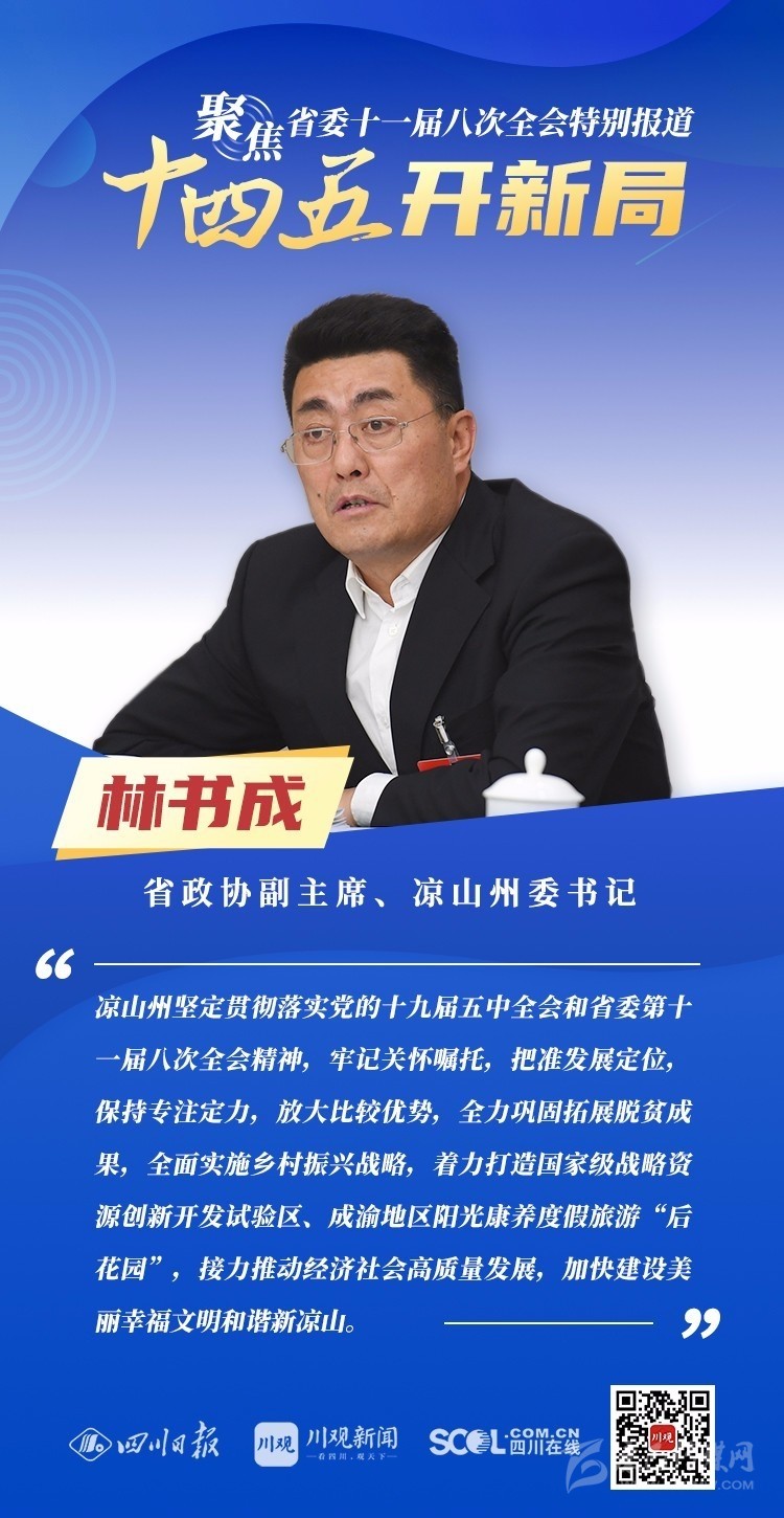 12月3日,中共四川省委十一屆八次全會(huì)在成都開幕,全會(huì)將深入學(xué)習(xí)貫徹黨的十九屆五中全會(huì)精神,審議《中共四川省委關(guān)于制定四川省國(guó)民經(jīng)濟(jì)和社會(huì)發(fā)展第十四個(gè)五年規(guī)劃和二〇三五年遠(yuǎn)景目標(biāo)的建議(討論稿)》,為未來5年乃至更長(zhǎng)時(shí)期四川發(fā)展謀劃新藍(lán)圖 。