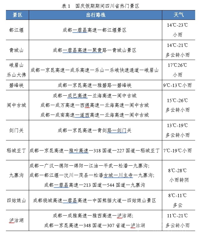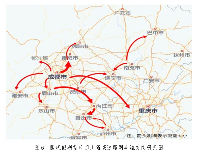 預(yù)計(jì)車流量主要圍繞成都等中心城市呈放射狀分布。節(jié)日期間,成都市周邊各主線站以及連通主線站的環(huán)線高速車流量最為密集,假期出行主要方向集中在成都往德陽、眉山往內(nèi)江、內(nèi)江往自貢、成都往雅安、成都往都江堰以及成都往重慶方向。