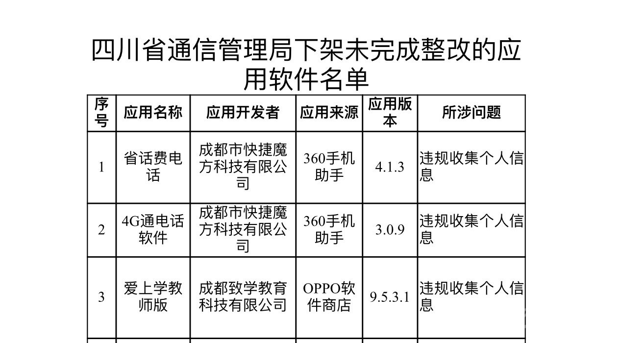 當天,記者從四川省通信管理局獲悉,依據(jù)《個人信息保護法》《網(wǎng)絡安全法》等相關法律要求,該局組織對這3款APP進行下架,要求相關應用商店立即組織對名單中應用軟件進行下架處理。