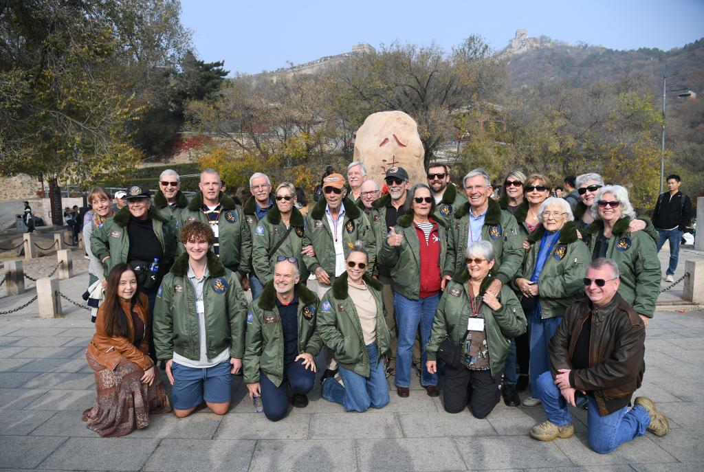 10月29日,飛虎隊(duì)老兵莫耶一行人在北京八達(dá)嶺長城合影留念。當(dāng)日,美中航空遺產(chǎn)基金會(huì)訪華代表團(tuán)成員陸續(xù)抵達(dá)北京。新華社記者任超攝