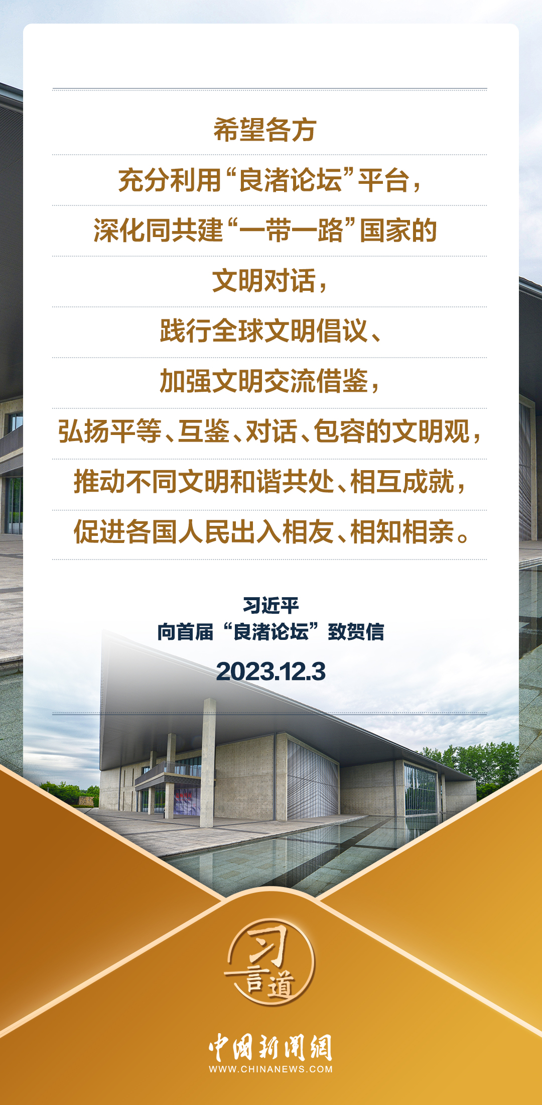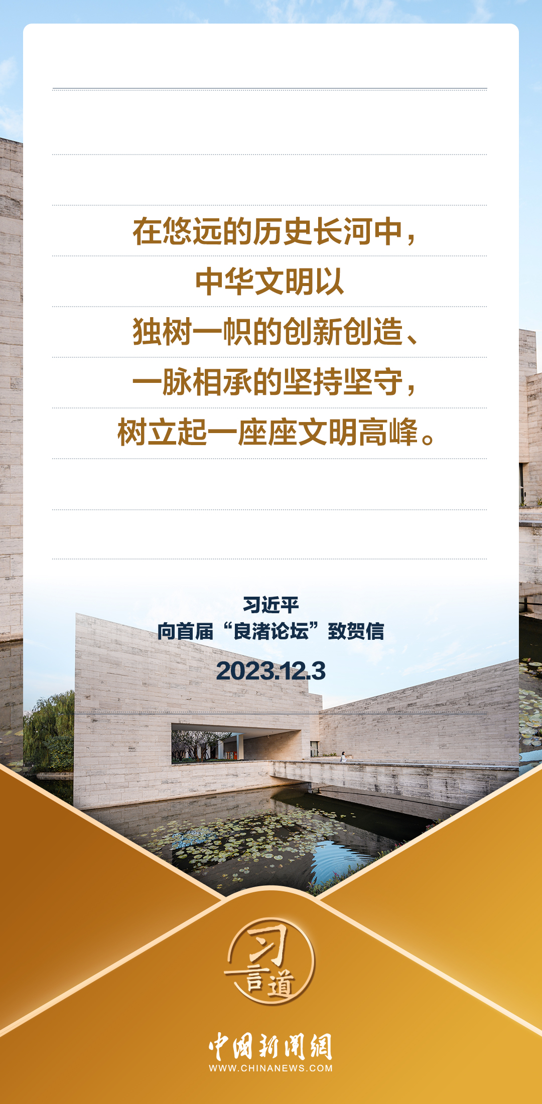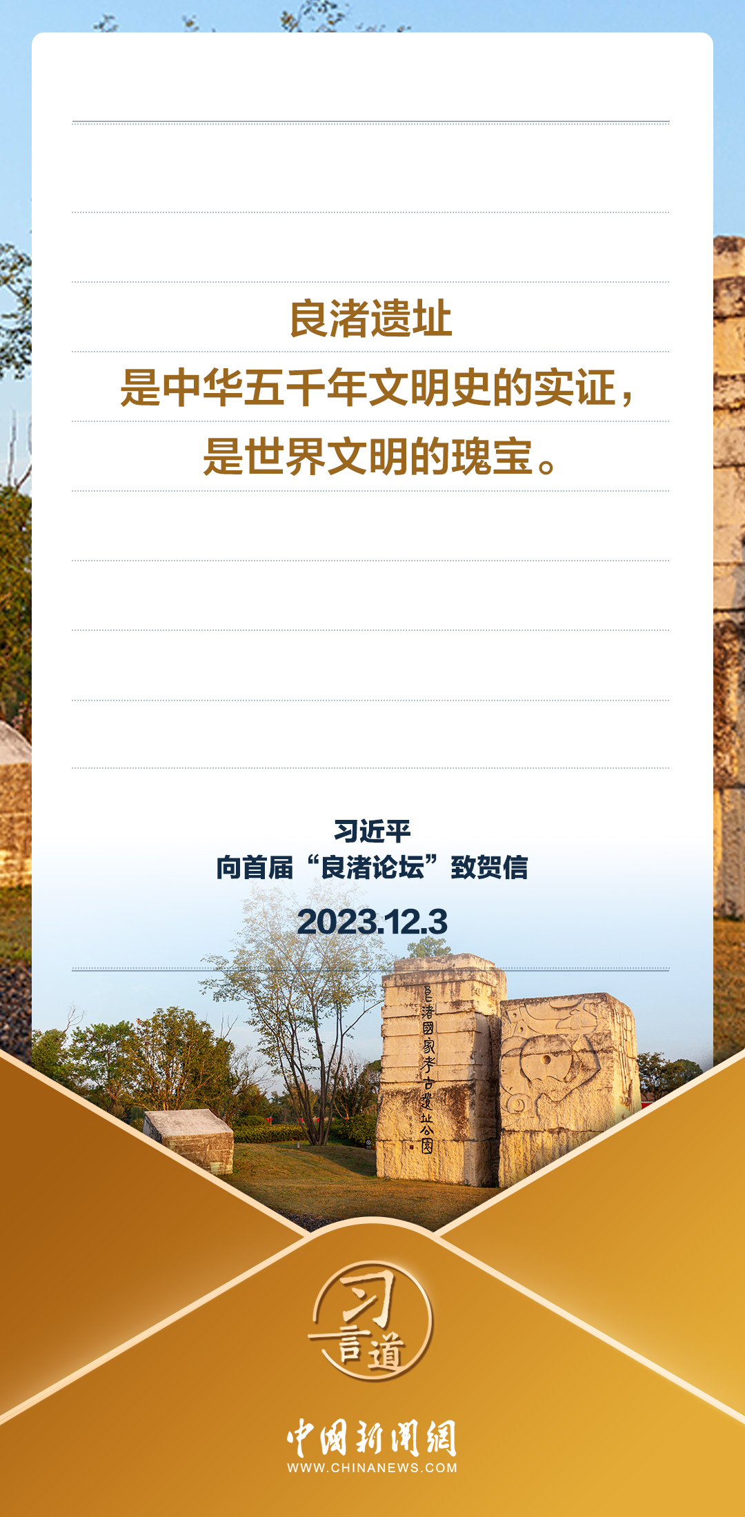 12月3日,國家主席習近平向首屆“良渚論壇”致賀信。習近平指出——