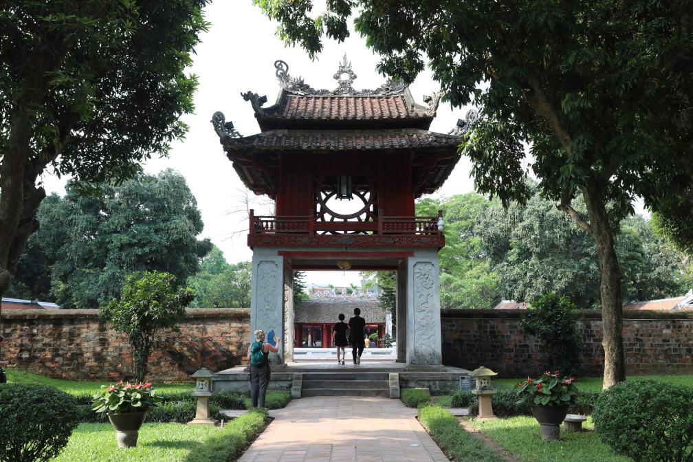 文廟是越南首都河內(nèi)的歷史文化地標(biāo)。文廟內(nèi)供奉著孔子,被譽(yù)為越南歷史上“第一所大學(xué)”。在這里求一幅漢字書法作品,是不少本地民眾和外國(guó)游客鐘情的活動(dòng)。