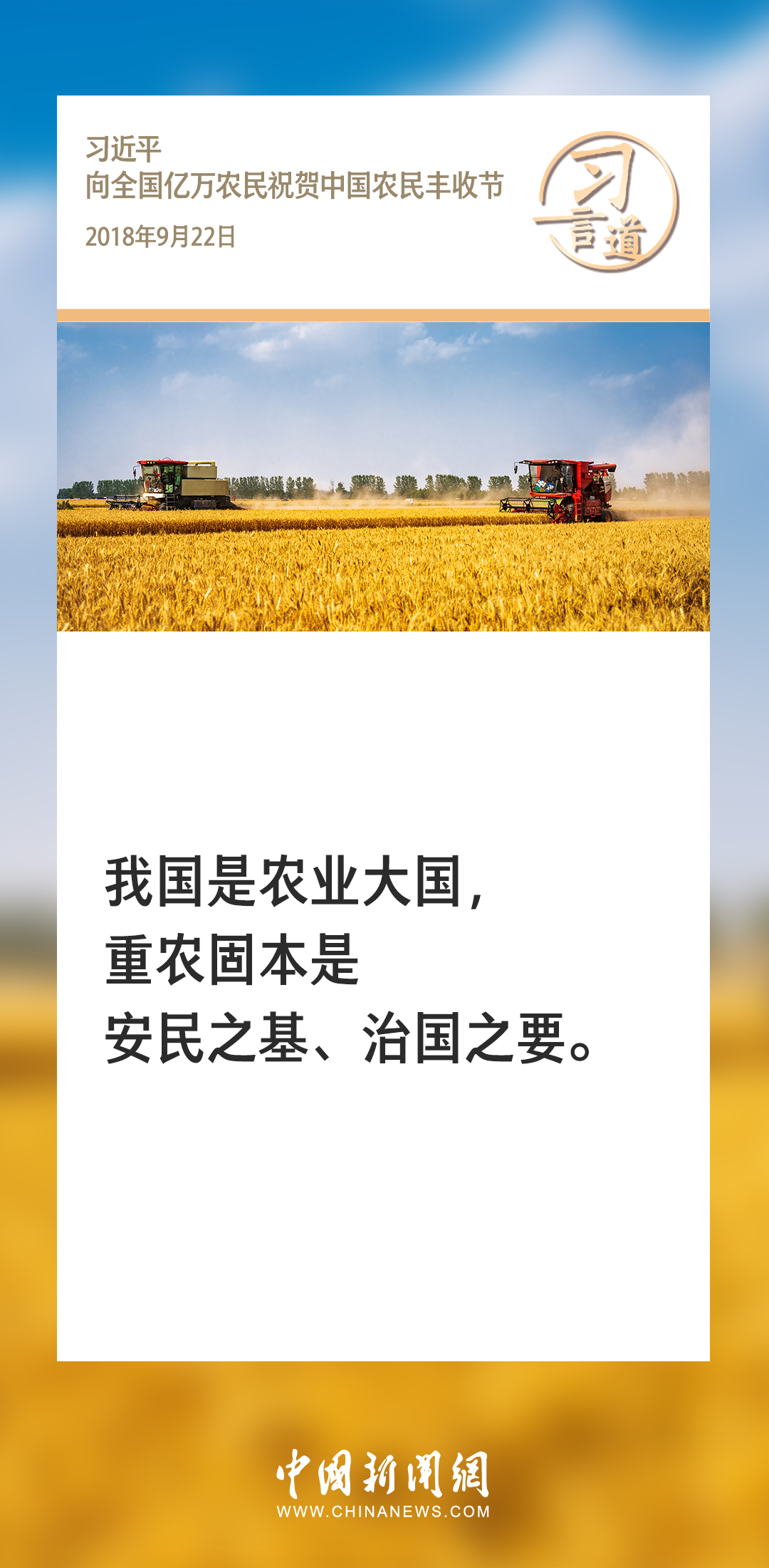 農(nóng)為邦本,本固邦寧。習(xí)近平總書記多次在不同場合就“三農(nóng)”工作發(fā)表重要講話、作出重要部署,始終堅持把解決好“三農(nóng)”問題作為全黨工作的重中之重。