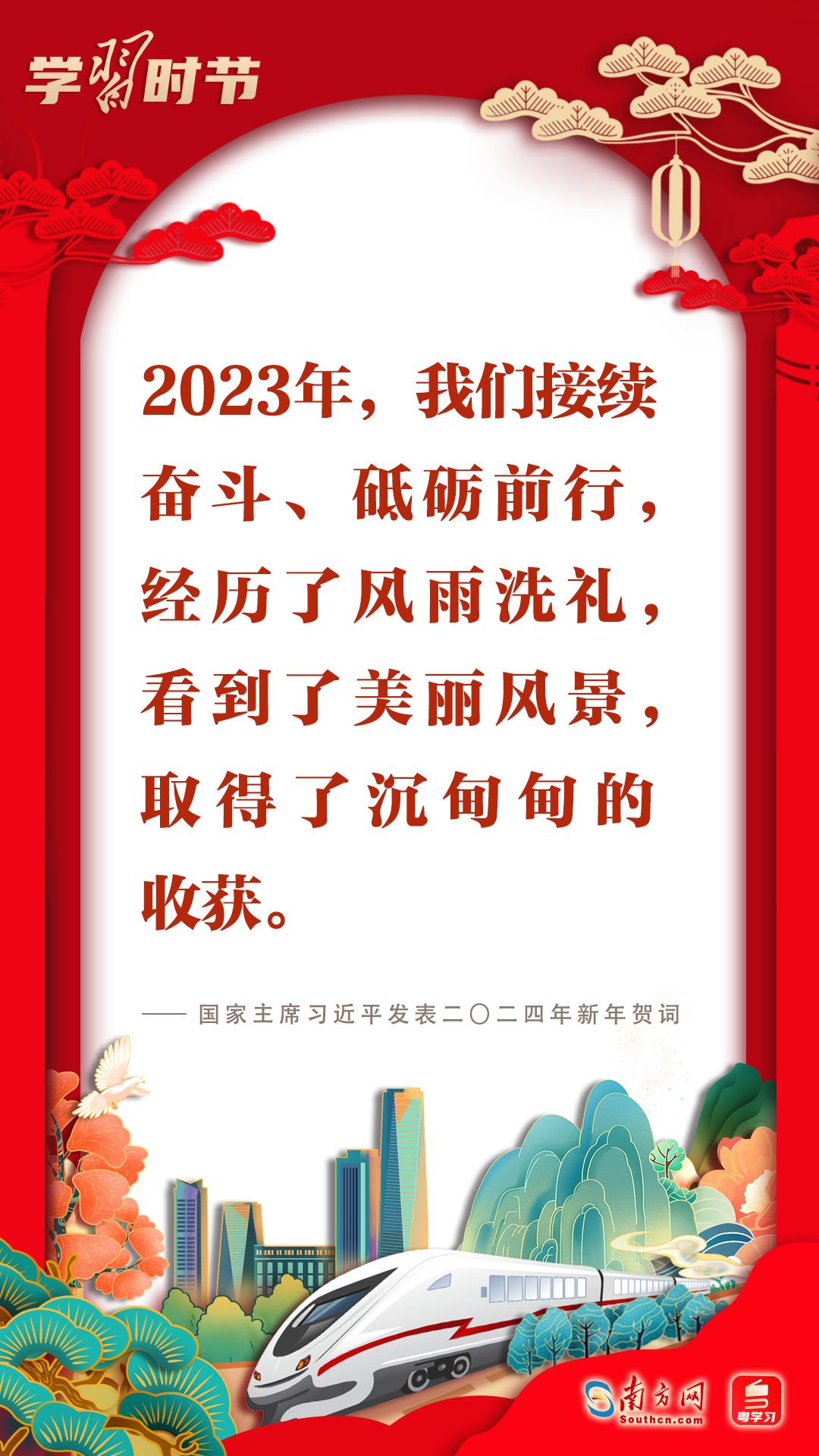 2023年12月31日晚,國家主席習(xí)近平在北京發(fā)表二〇二四年新年賀詞。賀詞飽含對廣大人民群眾的深情,彰顯對中國發(fā)展的堅定信心。回首過往,展望未來;砥礪前行,征程再起。讓我們一起在習(xí)近平主席的新年賀詞中感受直抵心靈的溫暖、催人奮進的力量!