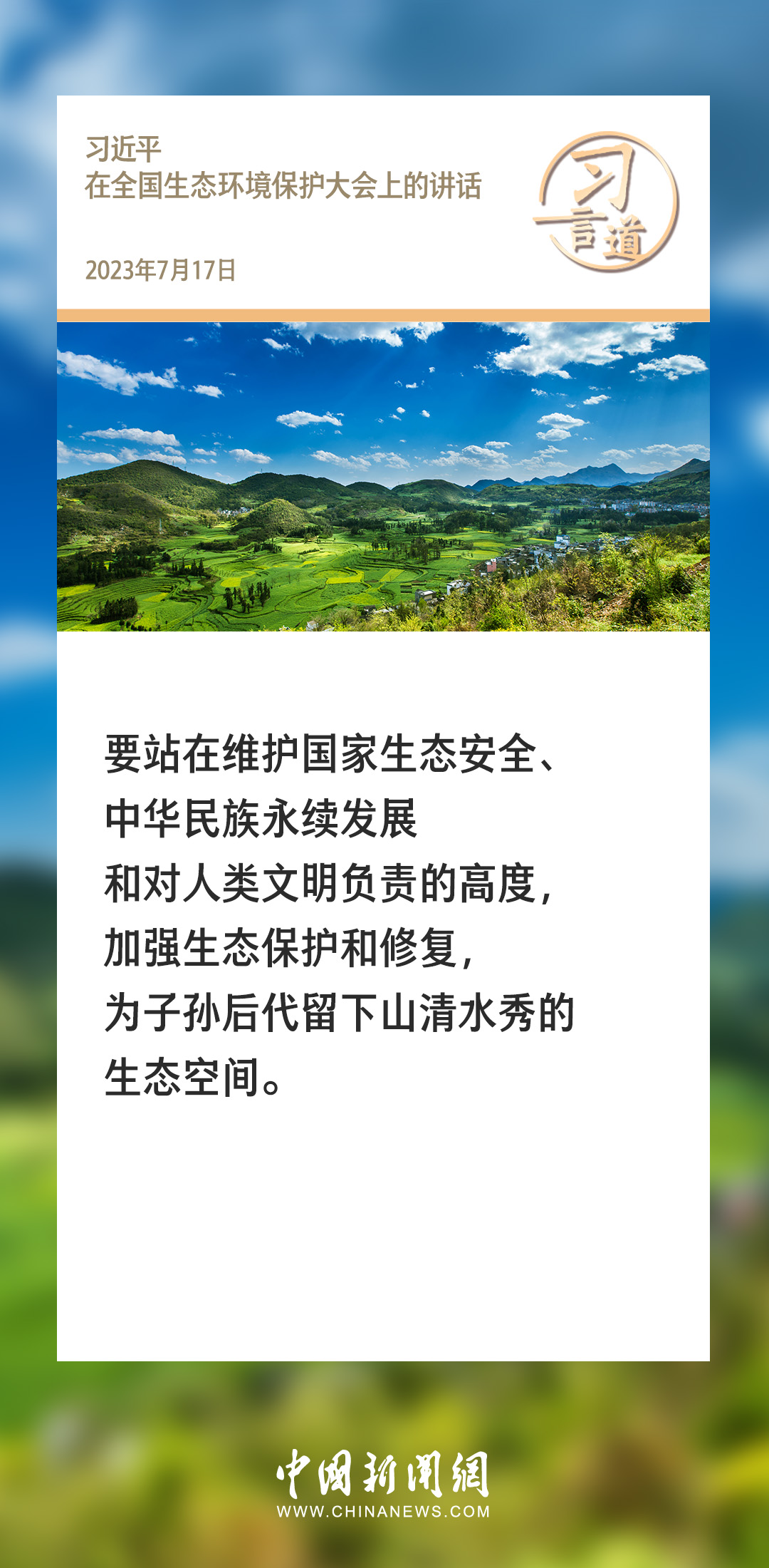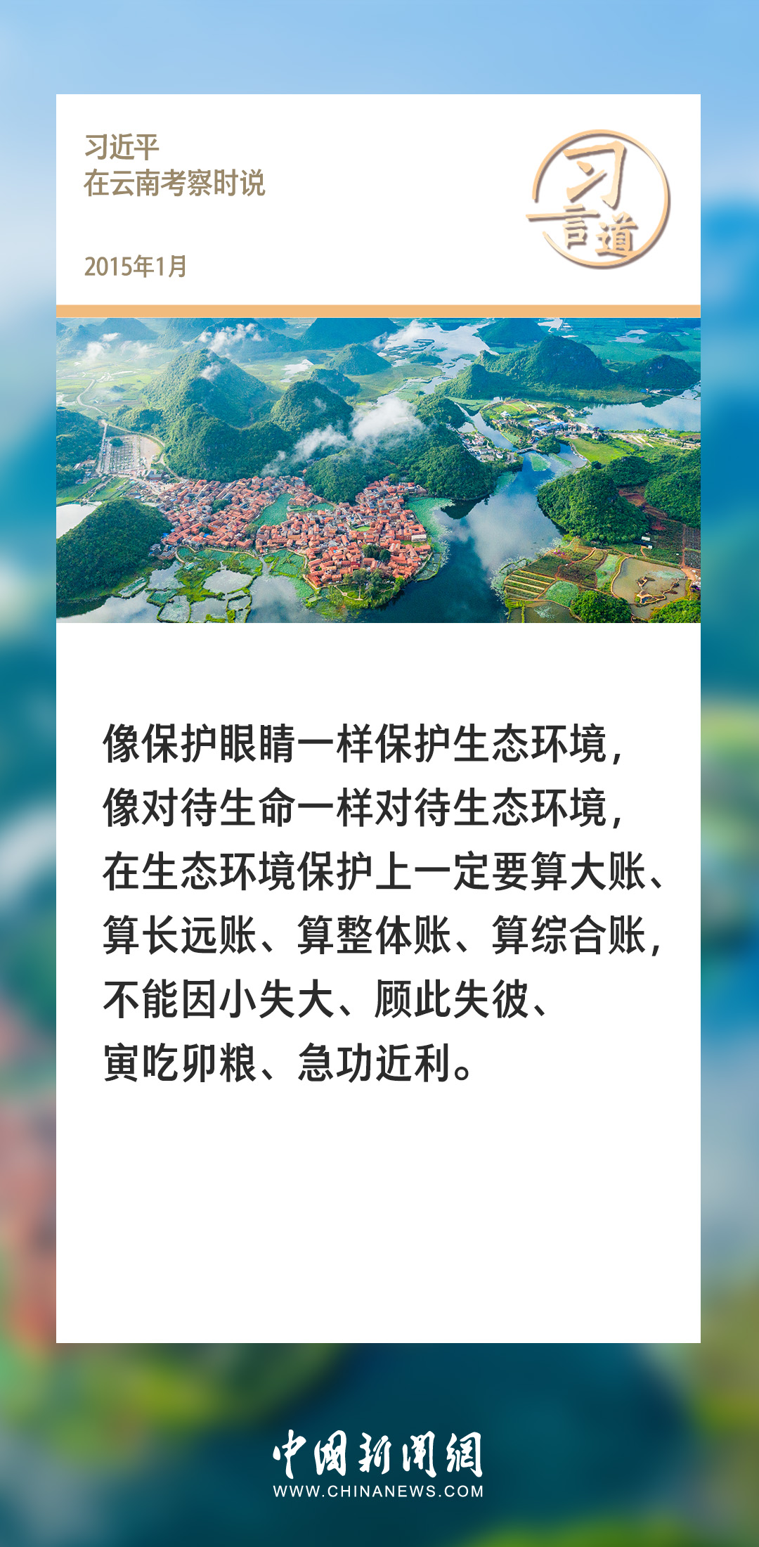 生態(tài)文明建設(shè)是關(guān)系中華民族永續(xù)發(fā)展的根本大計。黨的十八大以來,習近平總書記就生態(tài)文明建設(shè)發(fā)表過一系列重要論述,諸多“金句”深入人心。