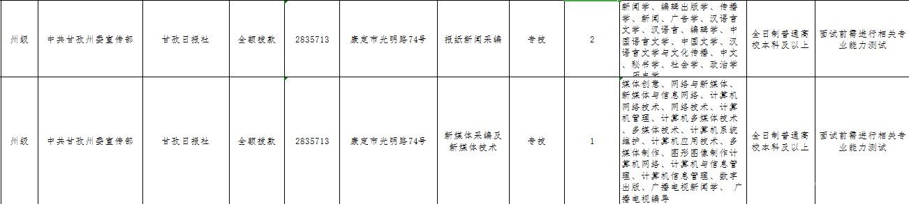 7月1日,甘孜州相關(guān)部門(mén)發(fā)布公告,甘孜日?qǐng)?bào)社將于2019年通過(guò)現(xiàn)場(chǎng)招聘會(huì)的形式公開(kāi)考核招聘3名編制內(nèi)工作人員。