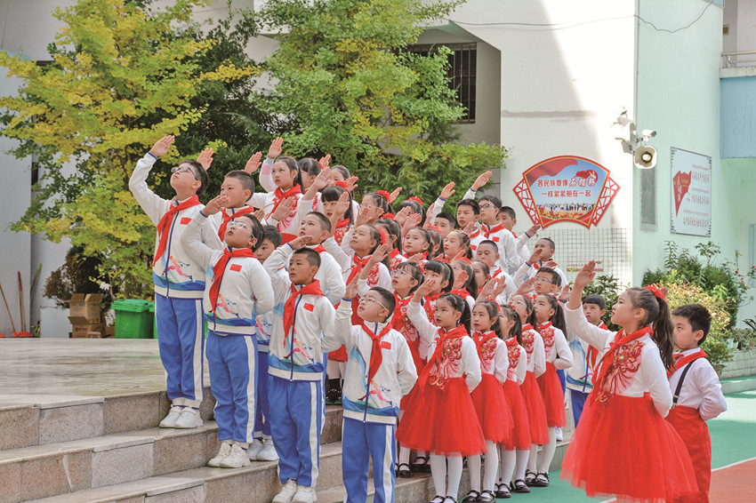 活躍提升組織生活也是少先隊(duì)工作強(qiáng)基固本的重要環(huán)節(jié)。通過健全少先隊(duì)階梯式成長激勵(lì)體系;全面實(shí)施分批入隊(duì)、分段教育、分級激勵(lì)和推優(yōu)入團(tuán);依托“紅領(lǐng)巾獎?wù)隆备采w隊(duì)中教育全過程等措施,全市14至15周歲新入團(tuán)團(tuán)員經(jīng)由少先隊(duì)組織推優(yōu)入團(tuán)達(dá)100%。此外,全覆蓋開展“開學(xué)第一堂隊(duì)課”、主題隊(duì)課活動,規(guī)范舉行入隊(duì)儀式等,讓少先隊(duì)員組織意識和光榮感全面增強(qiáng)。