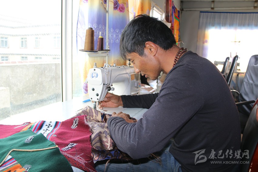 在白玉縣阿察鎮(zhèn)街上,有一處很不起眼的服裝加工店,店里擺放著各色質(zhì)地考究的服裝面料和時(shí)尚的藏族服裝。白玉縣祥陽措青年悅民族服飾商貿(mào)有限責(zé)任公司經(jīng)理在熱是納塔鄉(xiāng)納塔村的牧民,他穿著自己生產(chǎn)的藏裝,在工作室里,看到牧民或操作縫紉機(jī)、或用手工精心制作藏裝,他露出了開心的笑容。他一再叮囑員工,一定要仔細(xì),要拿出最好的本事,用一流的技藝,不僅要讓顧客滿意,還要打出公司的服裝品牌,質(zhì)量是公司和員工的立身之本。