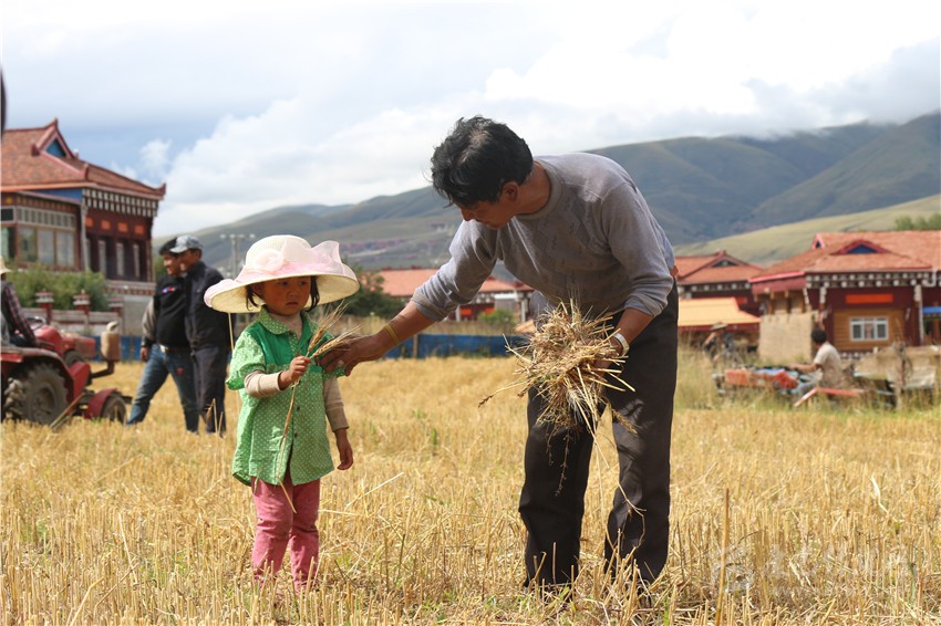 收割機、拖拉機、鐮刀……日前,爐霍縣仁達鄉(xiāng)村民用現(xiàn)代與傳統(tǒng)兼具的各種農(nóng)業(yè)設(shè)備開啟了歡快的“收割大戰(zhàn)”。