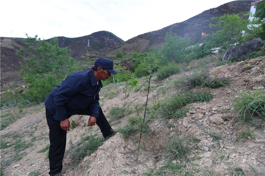 6月22日黃昏時(shí)分,因放心不下今年才種植的花椒樹,鄉(xiāng)城縣漁洼仲村支部書記阿魯占爭爬上山坡查看樹苗的長勢(shì)情況。站在山坡上,看著身后成片的果樹上裹著青衣的李子、蘋果、核桃隨風(fēng)搖曳,“看來今年又是一個(gè)水果豐收年”,阿魯占爭高興地說。