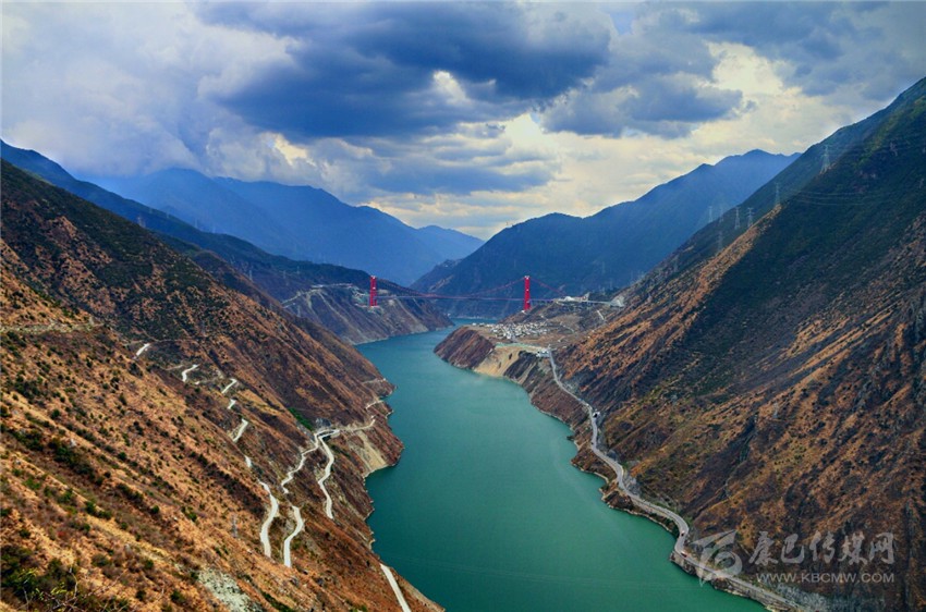 嵐安鄉(xiāng)距瀘定縣城27公里,瀕臨大渡河岸邊的高山上,經(jīng)一條長18公里的盤山硬化路與國道318線相連。駕車駛過嵐安大橋,便沿著山腰絕壁,回環(huán)爬升,踏上了嵐安鄉(xiāng)通鄉(xiāng)路。通鄉(xiāng)路最高位置與大渡河河床落差大約500米,所以這條通鄉(xiāng)路也是一個絕佳的觀景“走廊”——除了一覽大渡河沿岸美景,這里也是觀賞雅康高速大渡河特大橋的絕佳位置,舉目東望,大橋的輪廓盡收眼底,“一橋飛架東西、鋼索橫貫云端”的氣勢讓人震撼不已。