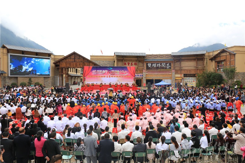 隨后現(xiàn)場氣氛更是達到高潮,掌聲陣陣、高潮迭起,《七律·長征》、《再唱山歌給黨聽》、《最美的歌兒獻給黨》等歌曲深情抒發(fā)了景區(qū)各族兒女對中國共產(chǎn)黨的真摯情感,《走向復興》、《愛我中華》、《大中國》等歌曲熱情謳歌了人民群眾赤誠的愛國情懷,《工人階級硬骨頭》、《人民公安向前進》等歌曲為大家展現(xiàn)了68年輝煌巨變的篇章和社會各界的精神面貌。