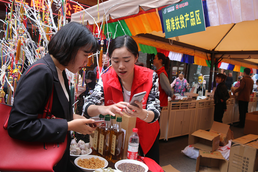電商元素突出,注重電商扶貧是此次展銷活動的另一特點。此次展銷活動采用了“線上線下互動”的模式,既有現(xiàn)場售賣,又有線上體驗;掃碼關(guān)注店鋪微信公眾號,掃碼進入網(wǎng)店頁面,微信付費享受折扣等,顯示電商思維的營銷手段層出不窮;各參展商家為推廣自家網(wǎng)點開設(shè)的限時低價搶購活動,更引發(fā)數(shù)百名消費者爭相參與。而電商扶貧則是此次活動的出發(fā)點之一?;顒硬粌H專門設(shè)立有精準(zhǔn)扶貧產(chǎn)品專區(qū),而且以貧困村農(nóng)牧民專業(yè)合作社為主要參展企業(yè)。所有參展企業(yè)均為免費入駐參展,活動主辦方還盡力保障企業(yè)利潤。